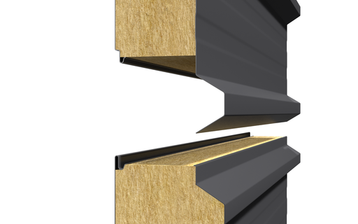 Толщина кровельных сэндвич-панелей варьируется от 50 до 300 мм, что позволяет выбрать оптимальное решение под регион эксплуатации и особенности объекта. Утеплитель из минеральной ваты обеспечивает надёжную тепло- и звукоизоляцию, а жесткие внешние оцинкованные металлические листы с антикоррозийным полимерным покрытием устойчивы к влаге, ультрафиолету и механическим повреждениям. Специальный профиль верхнего листа формирует дополнительное ребро жёсткости и улучшает водоотвод, препятствуя застою осадков на крыше.