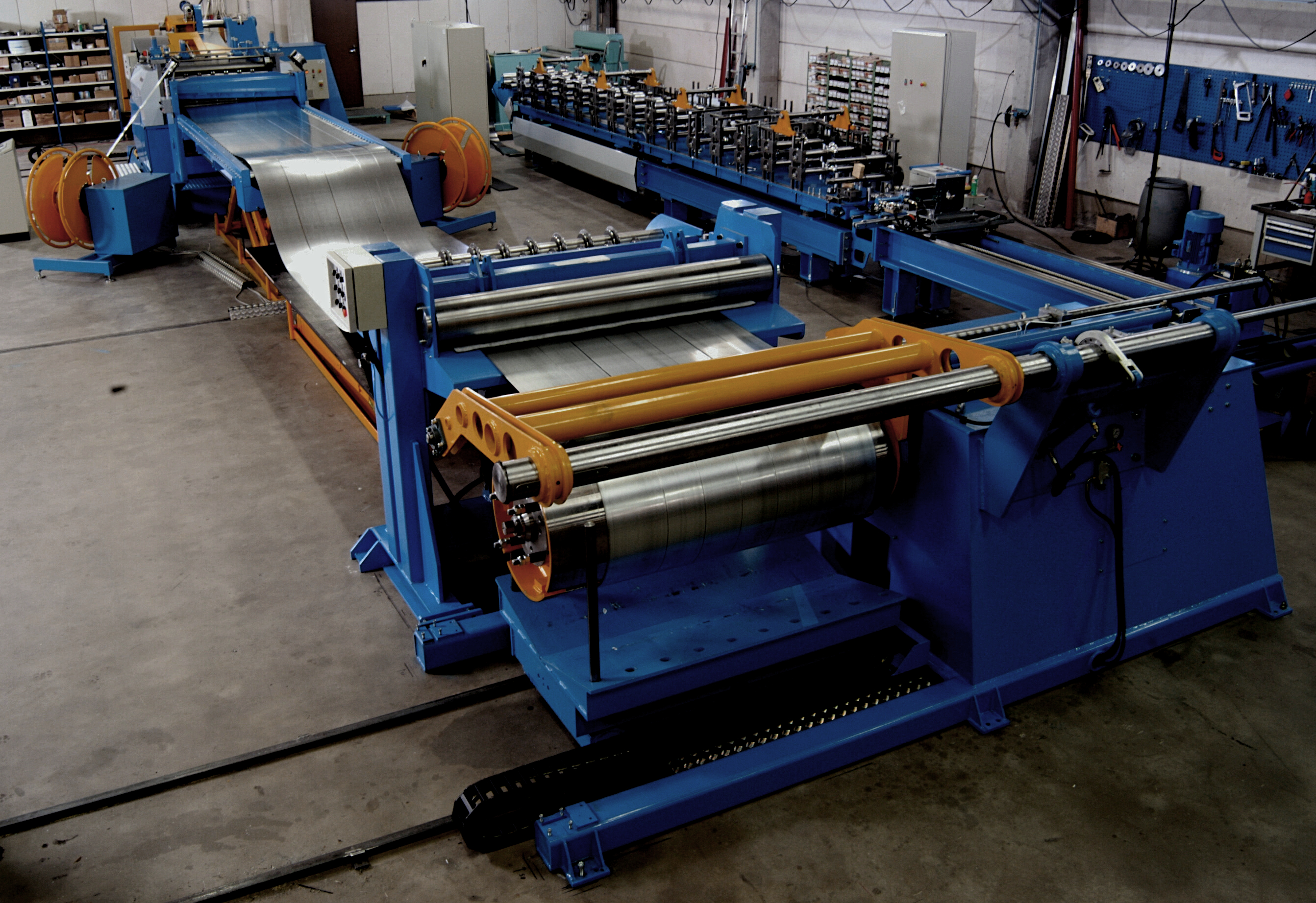 Продольная резка металла: Производственная линия для продольной резки металла может включать в себя такие компоненты, как подача металла, устройство продольной резки, устройство управления скоростью движения металла, систему охлаждения и отвода отходов. Для высокоскоростной продольной резки металла могут использоваться специализированные линии с магистральными режущими головками, которые движутся по металлическому листу.